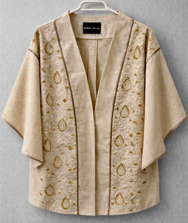 کت لینن سوزن دوزی ترکیب با لینن نچرال فری سایز مناسب برای سایزهای ۳۶تا۴۴استایل خاص وزیبا با دامن وشلوار نخی کرم یا حتی شلوار جین