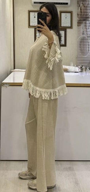 ست بلوز ودامن لینن پلیسه یه مدل شیک ولوکس برای خانم ها دختران جوان که میخواهند استایل به روزی داشته باشند بلوز گشاد طراحی خاص مزون مهداست نوار تزیینی پایین بلوز این مدل رو خاصتر کرده ست شلوار این بلوز کمر تماما کش هست وایستایی زیبایی داره ضمن اینکه بافرم کلی پارچه هماهنگی داره قد این شلوار ۹۷هست وگشاد راحتی شیکی رو تواما باهم داره برای دیدن مدلهای بیشتر به پیج mahda__mezonسر بزنید