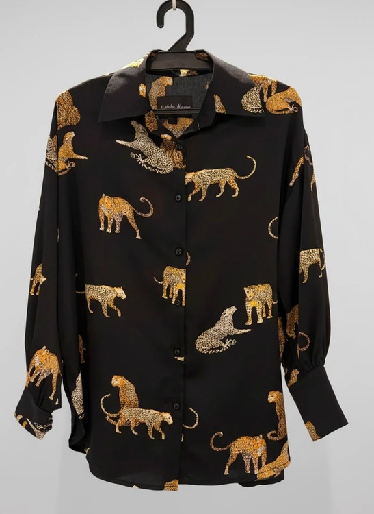شومیز کرپمشکی با طرح ببر فری سایز با گشادی نرمال مناسب مهمانی ودورهمی لطافت پارچه شومیز باعث ریزش دار بودن آن شده است برای استایل کردن این شومیزگزینهای زبادی دارید با انواع شلوارمشکی ودامن استایل شیک خاصی را خواهید داشت تنفس پذیری این نوع پارچه باعثمیشود در فصل بهار وتابستان احساس گرما نکنید