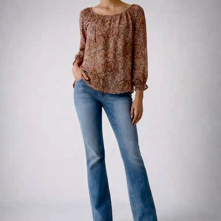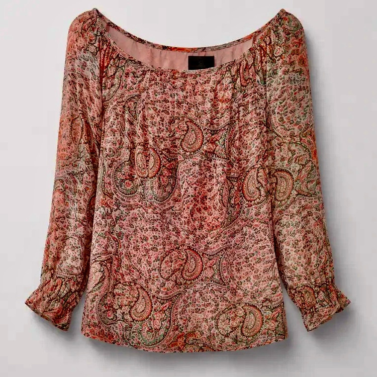 شومیز حریر طرحدار با آستر که پوشش خوبی به شومیز داده یقه گرد نسبتا باز وفرمگشاد شومیز باعثشده مناسب بیشتر اندامها باشد این شومیز ریزش مناسبی دارد ولطیف ومناسب مهمانی ودورهمی است برای اندامهای متوسط تا روی باسن قرار میگیرد فرم بازی یقه بصورتی است که تا حدود شانه باز میماند