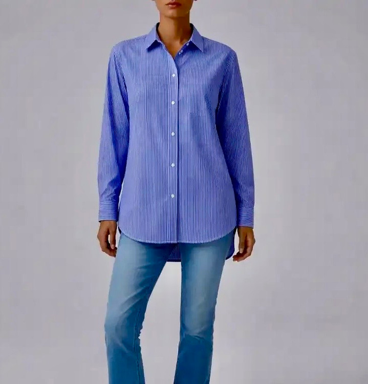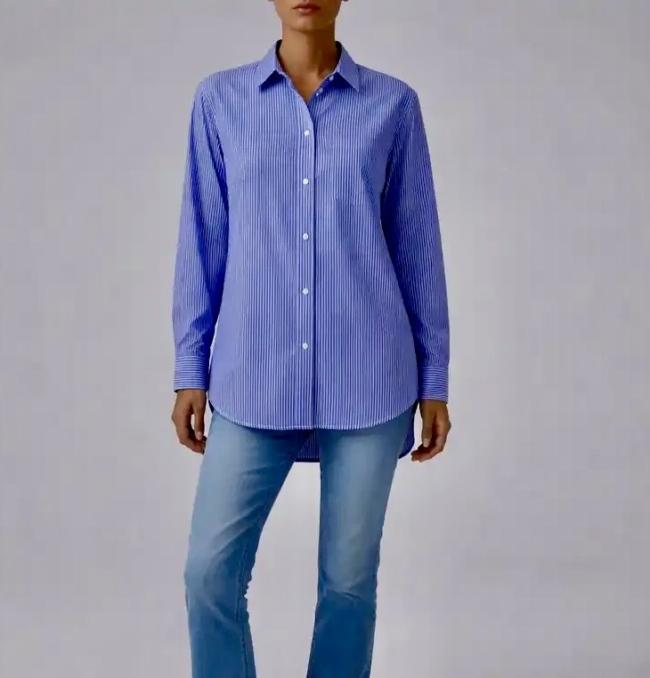 شومیز لینن آبی با راههای عمودی زیبا اسم این شونیز لارا هست بواسطه طرحی که داره قد روبلندتر نشون میده کیفیت پارچه عالی وخنک وشیک برای استفاده در فصل گرما با خیال راحت در بیرون از منزل استفاده کنید چون بلند وفرم آزاد شومیز پوشش مناسبی براتون داره بدون رنگ دهی وآبرفت ایستایی زیبایی داره وتنخورش شیک هست با انواع شلوارهای جین ست میشه