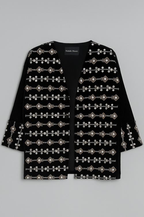 http://https://www.instagram.com/mahda__mezonکت مخمل سوزن دوزی مشکی با کلهای سفید ترکیب بینظیر وزیبایی رو ایجاد کرده آنچه که برای داشتن یه استایل شیک ولوکس لازم دارید برای ست کردن هرگز به زحمت نمیفتید چون هم با شلوار کلاسیک مشکی وهم سفید میتونید