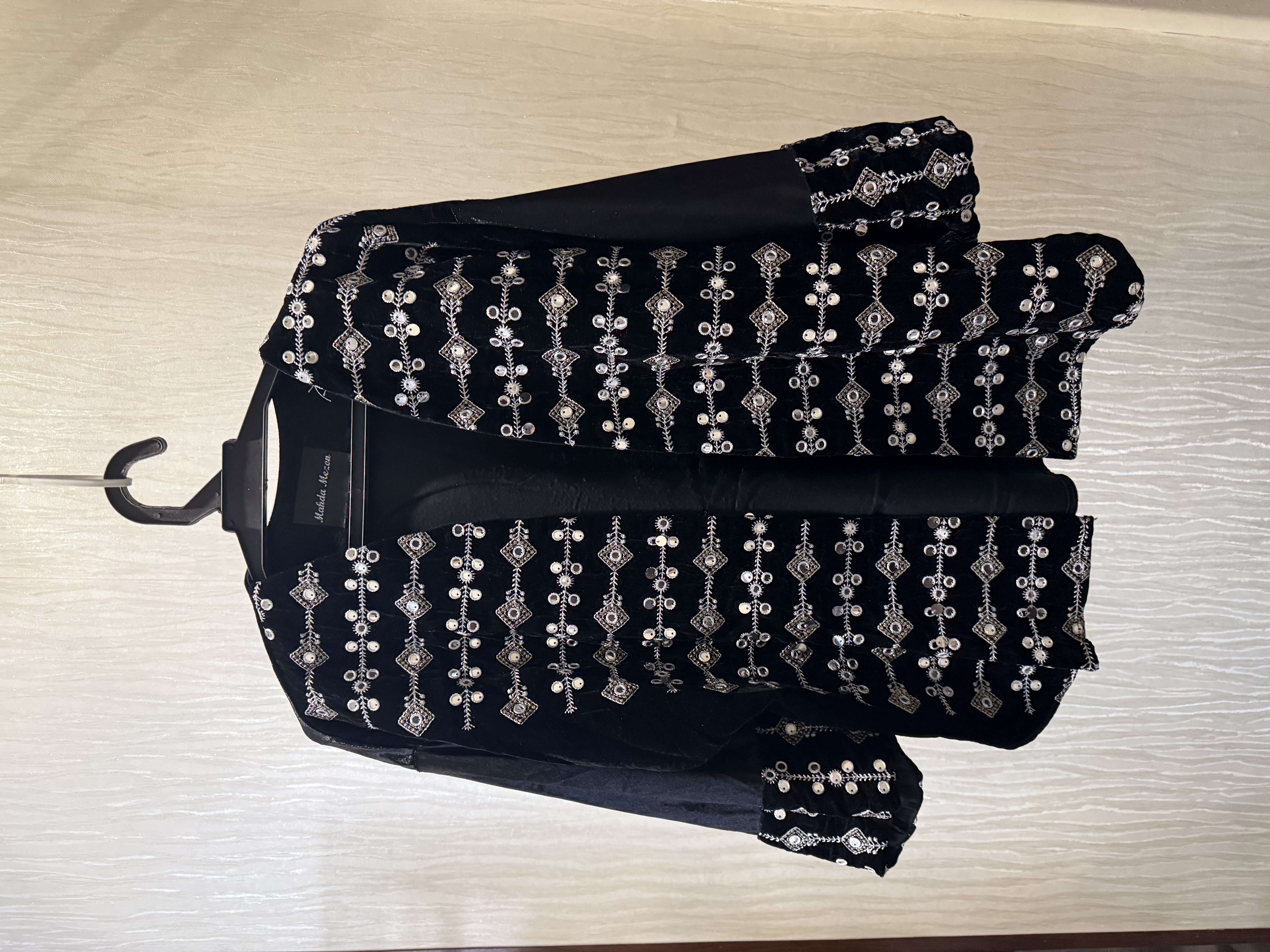 http://https://www.instagram.com/mahda__mezonکت مخمل سوزن دوزی مشکی با کلهای سفید ترکیب بینظیر وزیبایی رو ایجاد کرده آنچه که برای داشتن یه استایل شیک ولوکس لازم دارید برای ست کردن هرگز به زحمت نمیفتید چون هم با شلوار کلاسیک مشکی وهم سفید میتونید