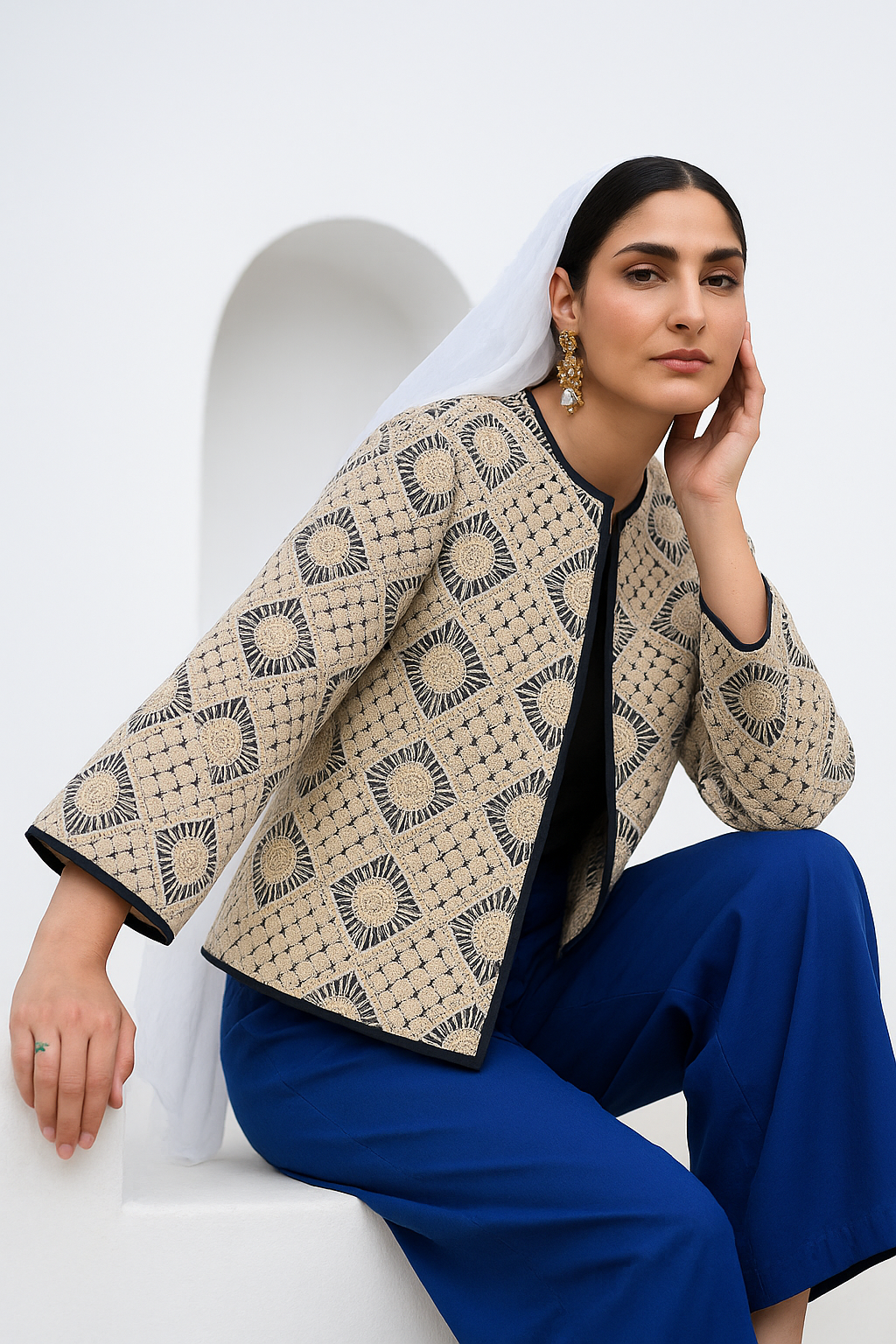 جنس: لینن سوزن دوزی شده