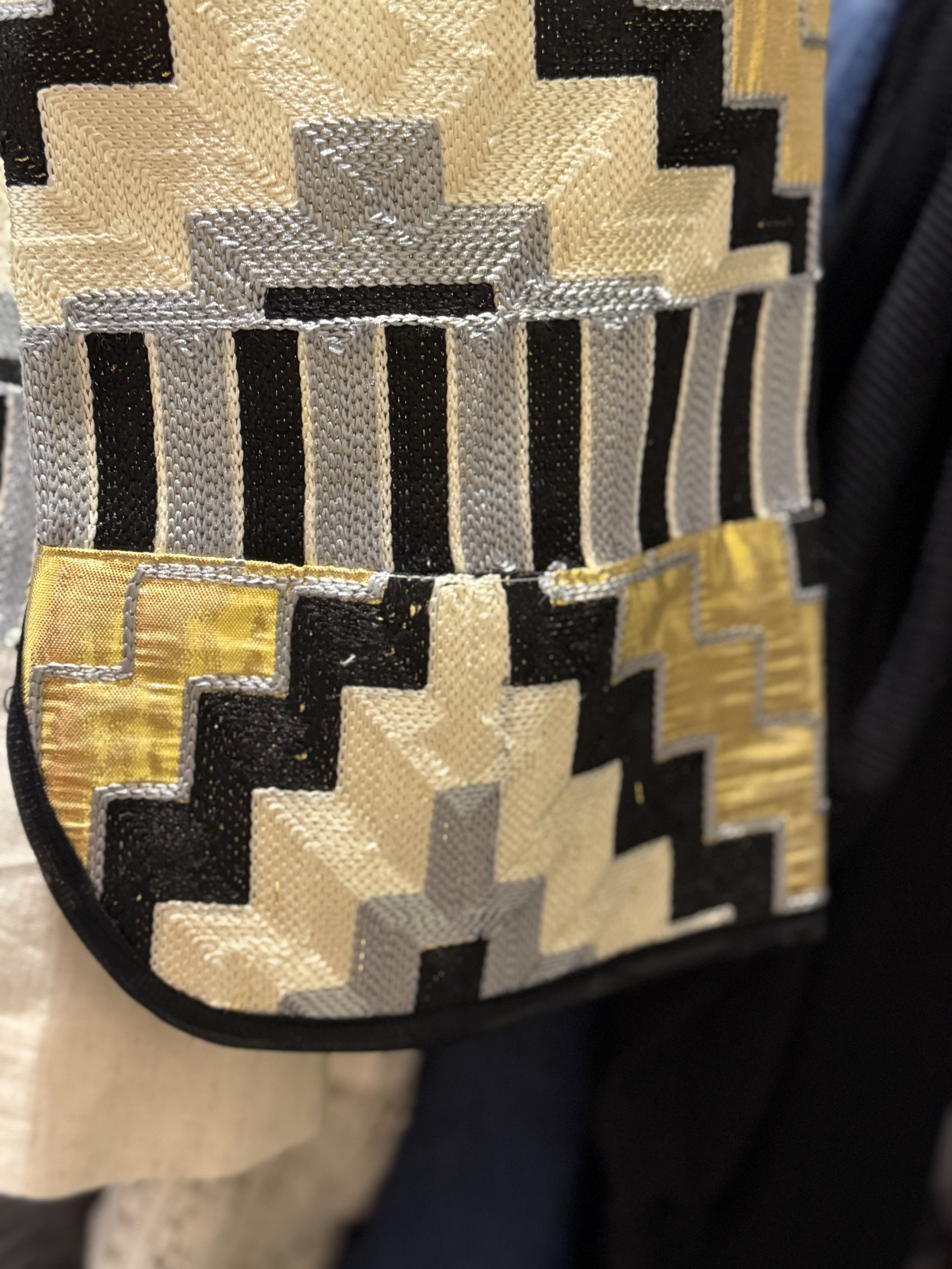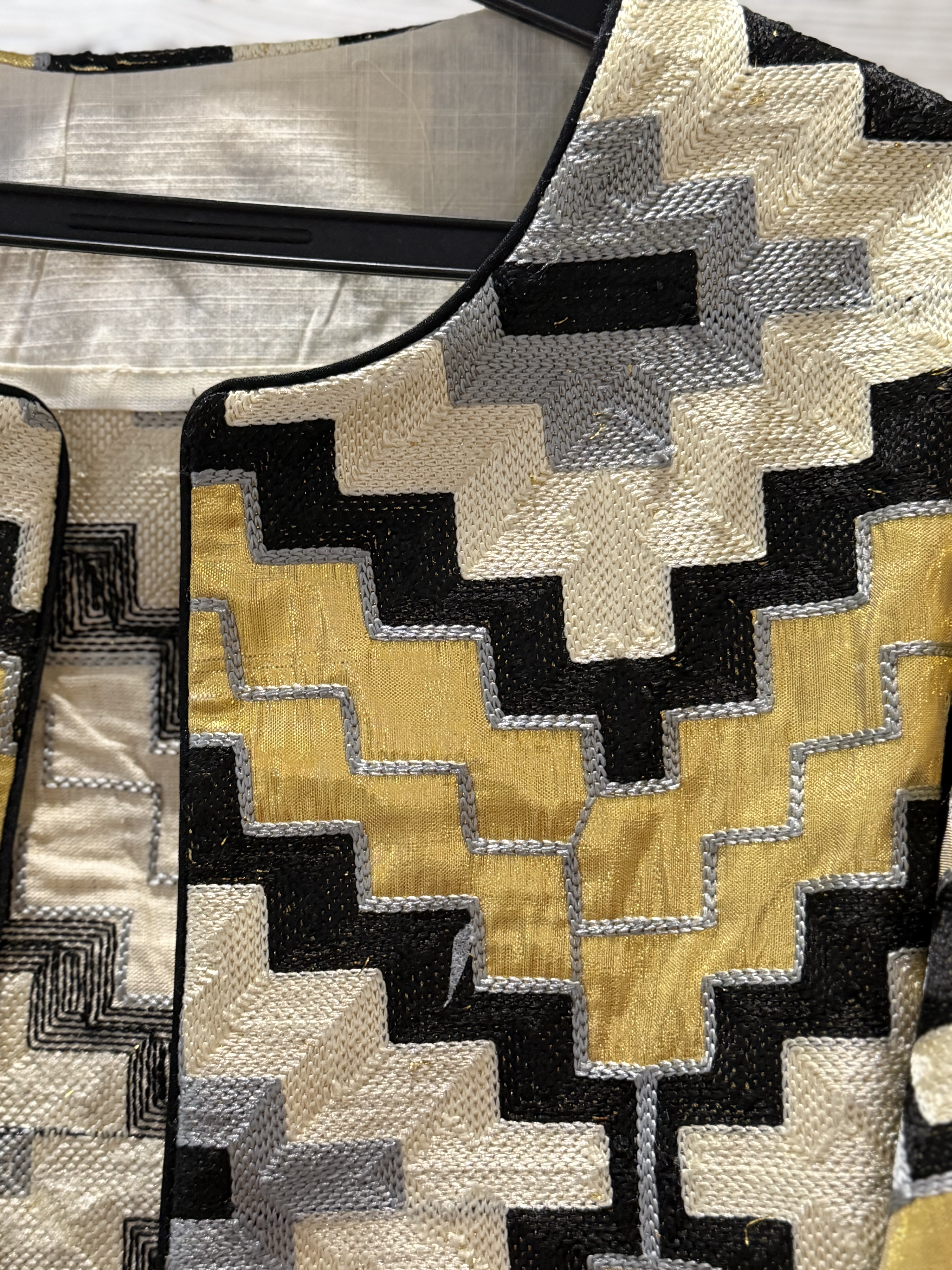 کت لینن سوزن دوزی فری سایز با شلوار مشکی یا دامن مشکی بسیار زیبا وشیک میشه برای دورهمی ومهمانیها مناسبه